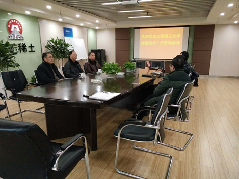 2018年1月31日,江西理工大學校長楊斌、副校長劉祖文、工程研究院院長唐云志一行來訪我司。公司總經理王龍濱、副總經理彭青與相關部門負責人在十四樓會議室會見了楊斌一行。雙方就推進校企合作以及中國稀土功能材料產業創新聯盟運營發展等事項進行了座談交流。